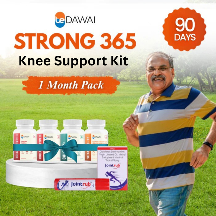 This Pain relief Kit has Collagen Type 2 Supplements, Calcium Supplements & Vitamin D Syrup which in combination are very helpful